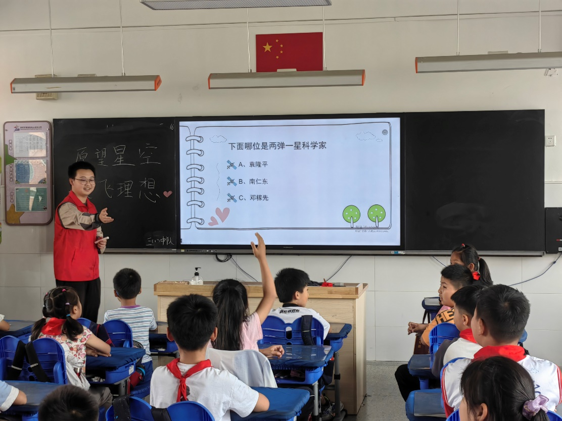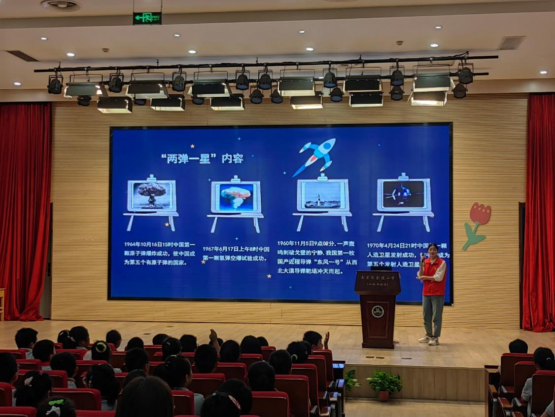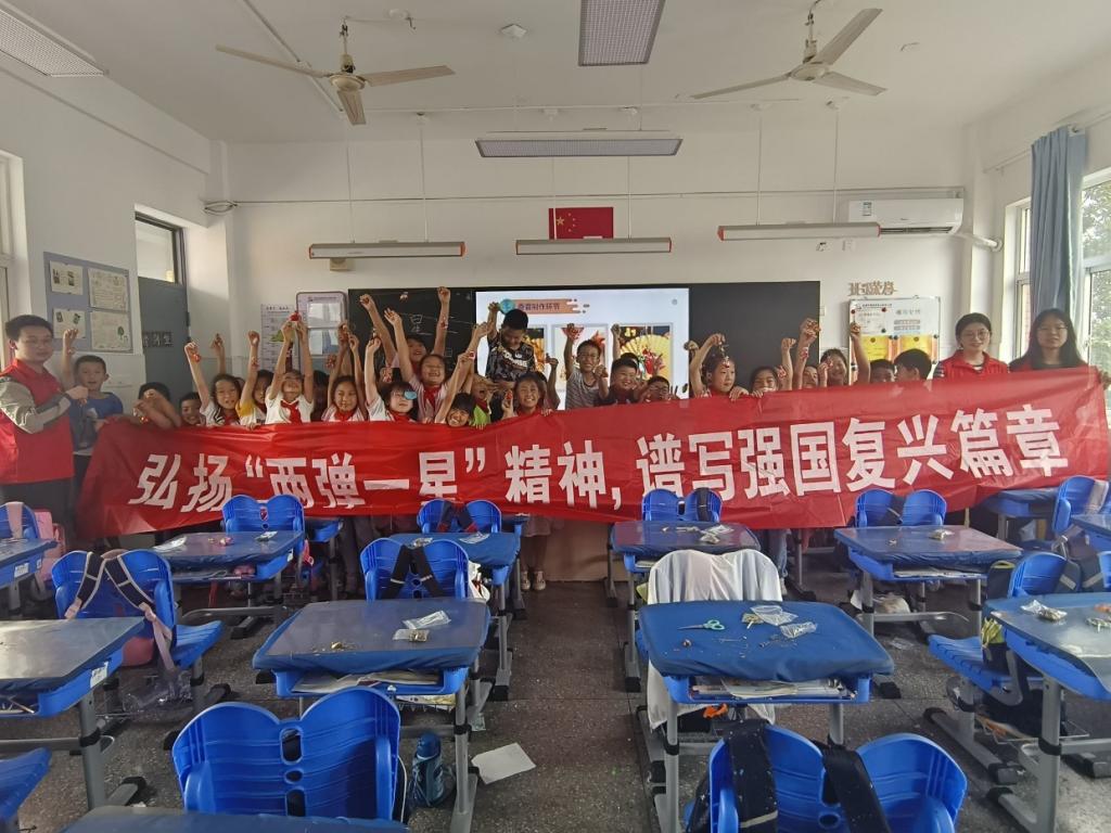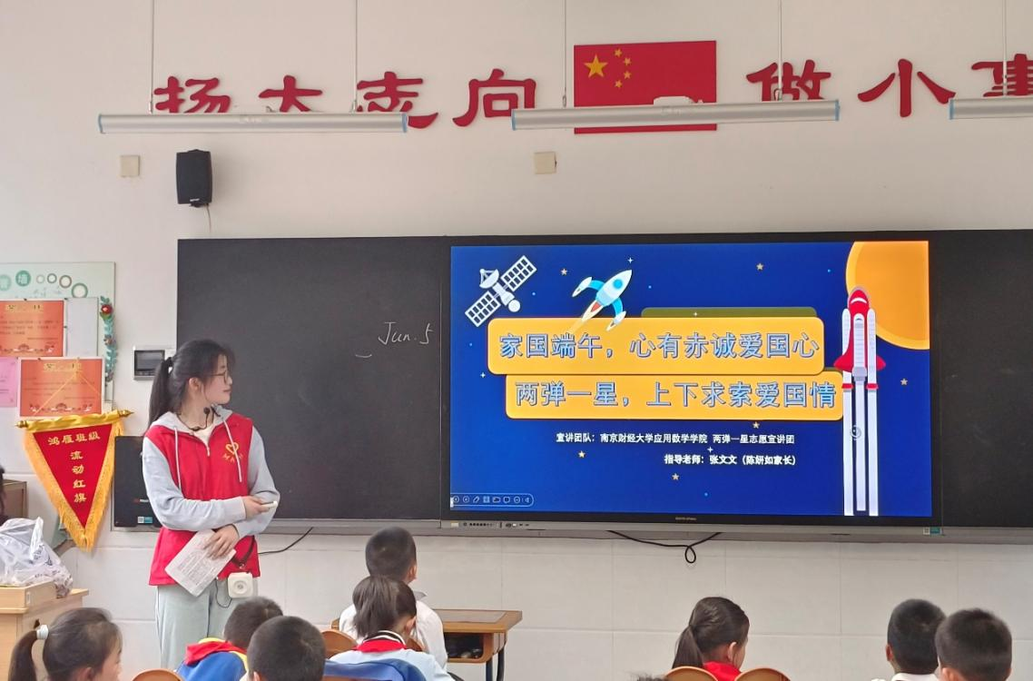 为宣传普及核科学知识,引导广大青少年学习“两弹一星”精神,牢固树立家国情怀和科技报国意识,同时在端午前夕弘扬中国传统节日文化,带领青少年体验民俗活动,6月5日、6月14日、6月16日,公司“熠星独行,‘核’护万家”暑期“三下乡”社会实践志愿宣讲团分别前往南邮小学、金陵小学、摄山星城小学开展“两弹一星”精神宣讲暨民俗体验活动。公司党总支副书记孙晓飞、办公室主任张文文、团委书记李攻明、全体志愿者以及三所小学部分师生参加宣讲。宣讲由金数2202班张灵凡、钱磊同学主持。