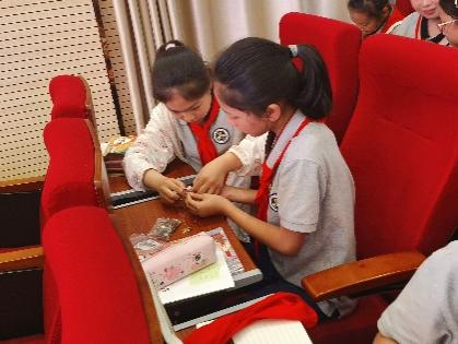 为迎接端午节的到来,志愿者还带领同学们开展了弘扬中华优秀传统文化的民俗体验活动:制作特色香囊。制作的过程虽然复杂,但是当大家拿着散发着悠悠艾草香的香囊时,每个人脸上都洋溢着收获的笑容。