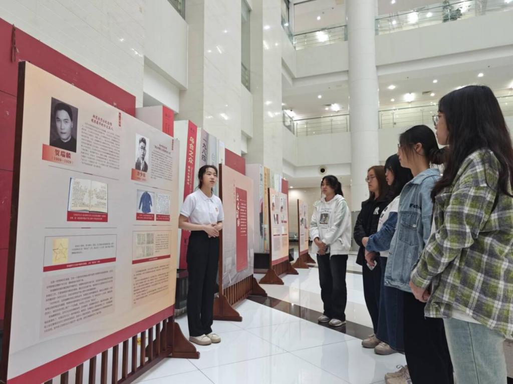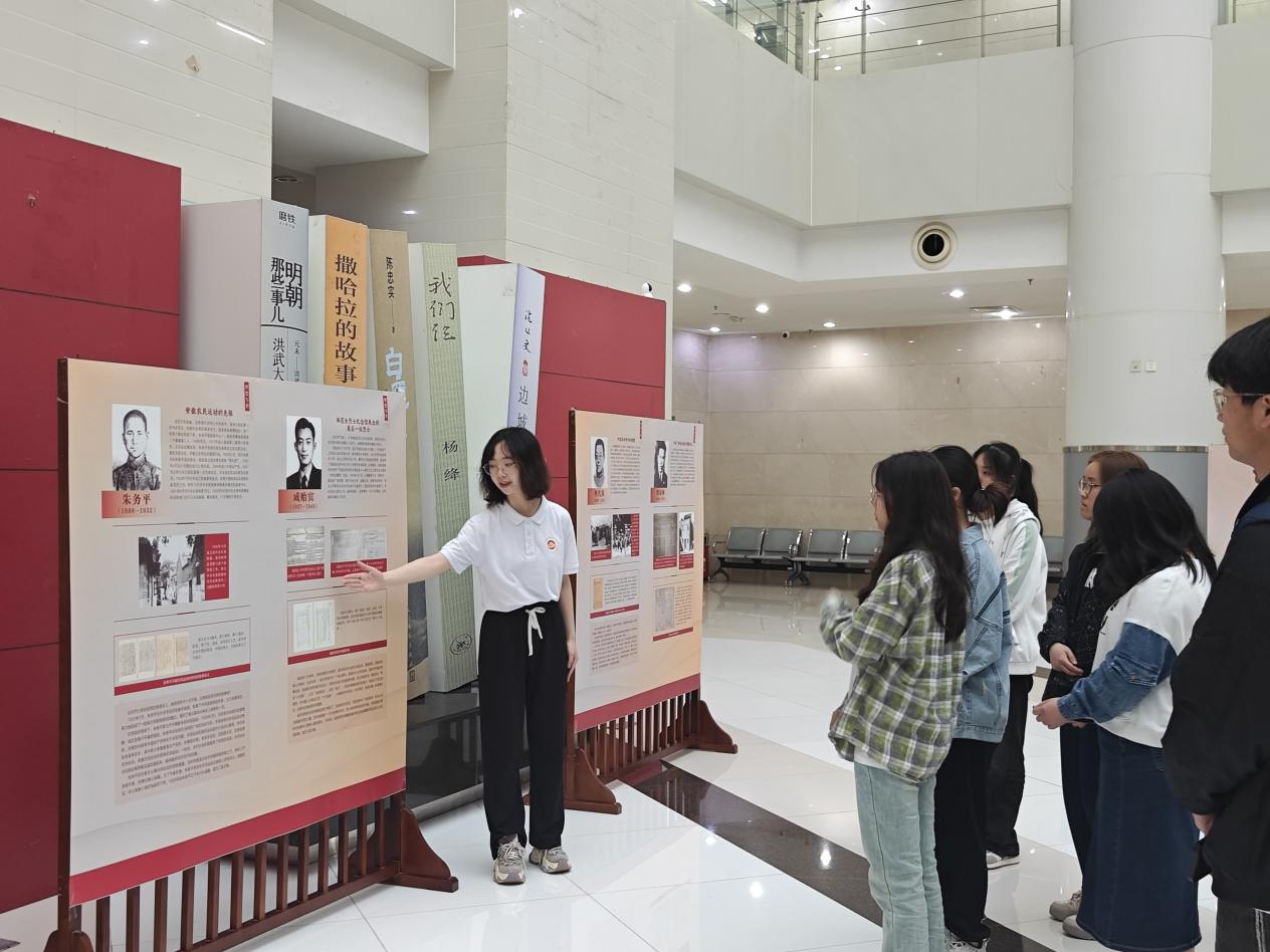 展览共分为两部分,第一部分是雨花台烈士纪念馆馆藏珍贵文物故事展。这里展出了许多烈士们生前使用过的衣物、武器、书信等,通过参观,同学们近距离接触了那段艰苦的革命经历和狱中斗争。第二部分是雨花英烈事迹与精神丛书展。这里展出了许多关于雨花英烈的书籍,详细记录了他们的英勇事迹和不屈精神。通过解说团志愿者的详细讲解,同学们了解到了更多关于英雄的故事,更加深刻地理解了他们为国家和人民付出的巨大牺牲。