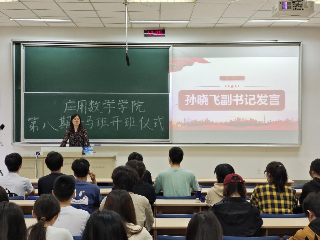 孙晓飞副书记讲话。她指出青马班的培训目标是培养积极向党组织靠拢、努力提升个人素质、乐于奉献他人的社会主义建设者和接班人,同时对于参加本期青马班的学员给予了肯定并勉励大家在后续的学习中继续严格要求自己。她希望大家在在取得学业进步的同时不断学习党的章程和创新理论,积极参加社会实践活动,牢固树立共产主义的远大理想和中国特色社会主义的共同理想。