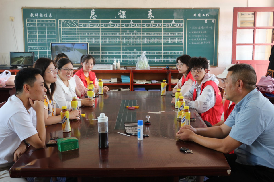 7月3日下午,实践团队来到灌云县下车镇柴市村石羊小学,与灌云县下车镇副镇长金立富、下车镇柴市村党支部书记韩丽华、下车镇柴市村石羊小学董事长胡胜利展开座谈,详细了解当地基础教育发展情况。石羊小学作为下车镇仅存的两所村小之一,开设学前教育及小学一至六年级7个班级,共有专任教师15人,员工121人。近年来,公司在解决周边村落适龄儿童就近入学、解除外出务工人员后顾之忧等方便发挥重要作用,在刚刚结束的毕业班考试中取得优异成绩。但是公司也同时面临生源短缺、硬件不足、教师年龄偏大等问题。