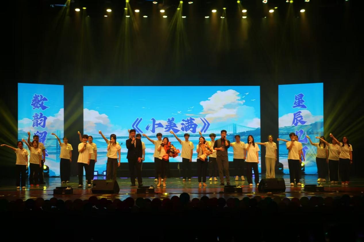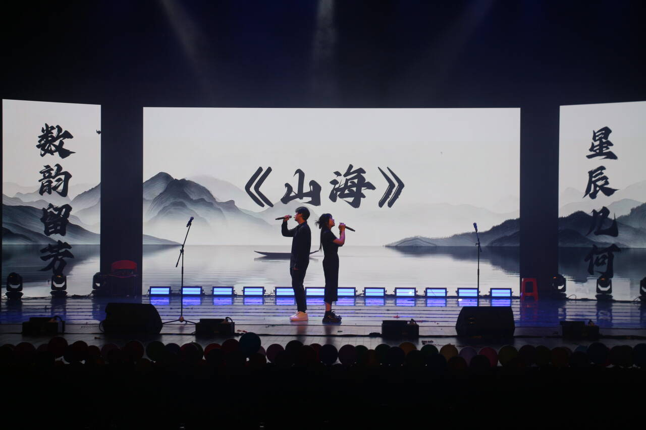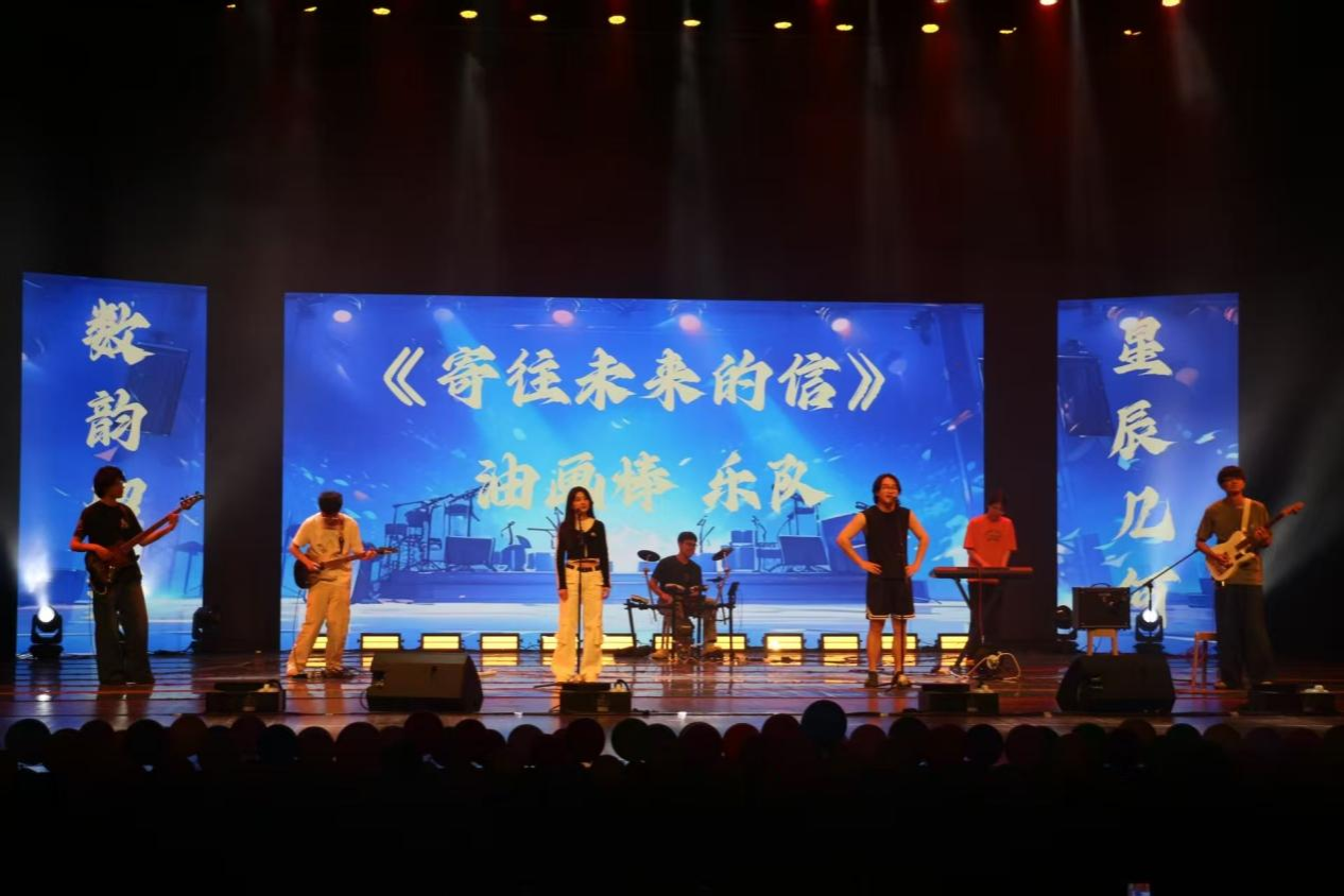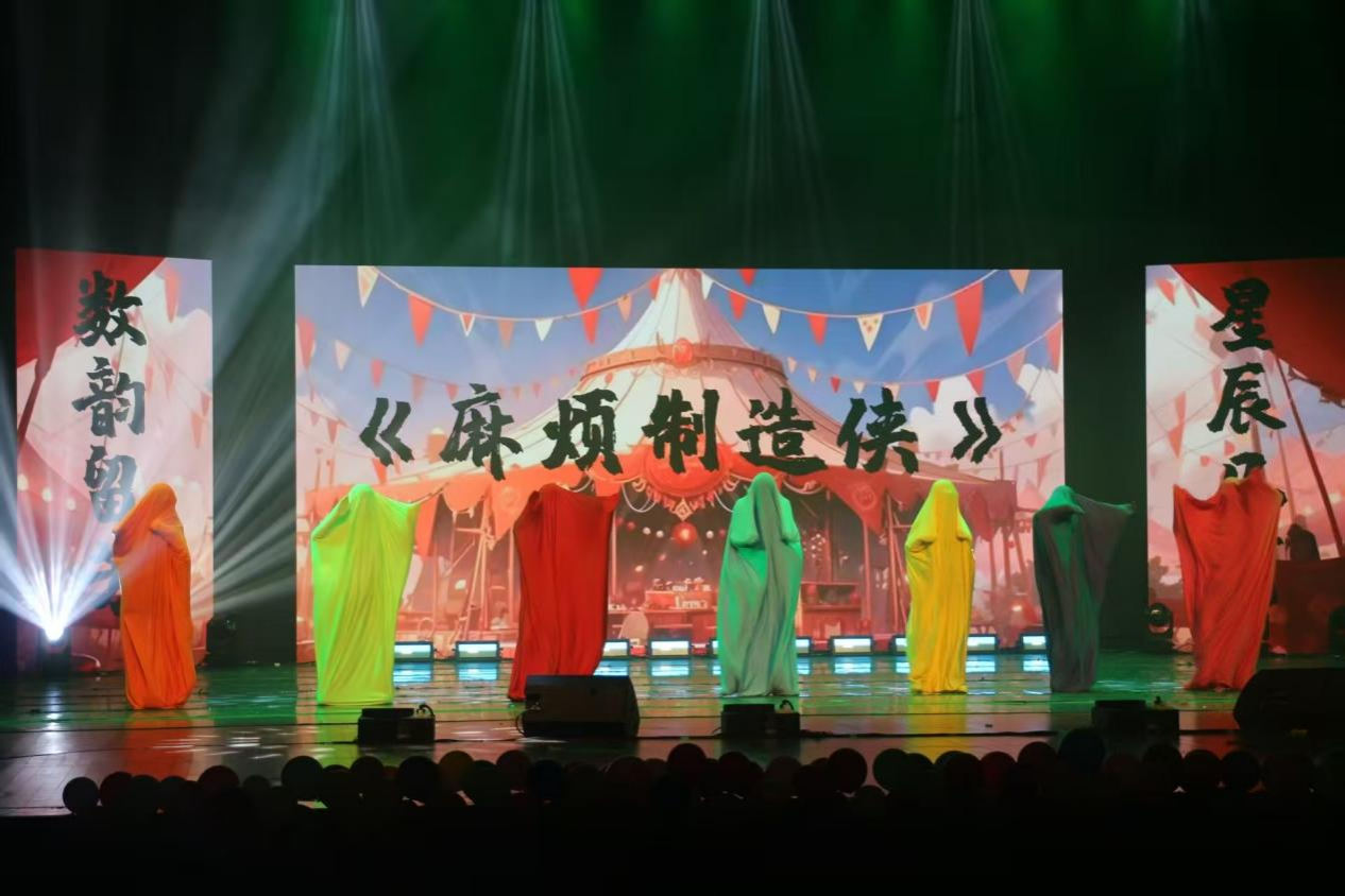 晚会分为星光序曲、星河璀璨、星辰远航三个篇章。晚会以油画棒乐队深情演绎的歌曲《寄往未来的信》拉开帷幕,悠扬的旋律瞬间点燃全场热情。大艺团流行乐团舞队带来活力四射的舞蹈《The boys》,动感的节奏引发阵阵欢呼。陆婧、严张岩、管翎卓、张页等同学献上朗诵《时光的翅膀》,声情并茂的表演带领观众穿梭于时光长廊,感受青春的诗意与力量。张乾文、尹衍琪、刘翔宇联袂演唱的《你曾是少年》以清澈的嗓音唤起观众对青春的记忆。国标舞协会则以一支《熵之狂欢》惊艳全场,用优雅的舞姿诠释了生命的律动。小品《谁杀死了周日》由秦玥阳、徐梓昂、方自然、梅浩军等同学倾情演绎,幽默诙谐的剧情令观众捧腹不已。罗瑾熙与葛子瑜合作的歌曲《山海》将深情与力量完美融合,将该篇章推向高潮。程家宝、侯笑雯、秦诗洋、姜祁慧、王陈成、王薛琪、邢瀚文等同学带来的创意舞蹈《麻烦制造侠》以新颖的编排和充满张力的表演赢得热烈掌声。王雅萱、王月雯、曲畅、戴圣嘉、孙安妮携手献上舞蹈《Like Jennie》,青春洋溢的舞步尽显活力。晚会尾声,杨虹、孙静娴、唐艺萌、周科诺等同学深情合唱《凤凰花开的路口》与《小美满》,特邀嘉宾孙晓飞副书记、温娇老师的倾情加盟为表演增添了不一样的色彩。悠扬温暖的歌声回荡现场,为整场晚会画上了圆满的句号。