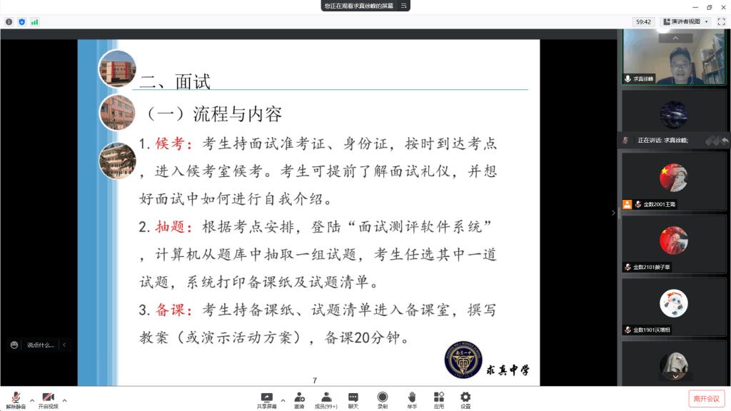 “教师岗位竞聘注意事项及结构化面试技巧”线上讲座现场