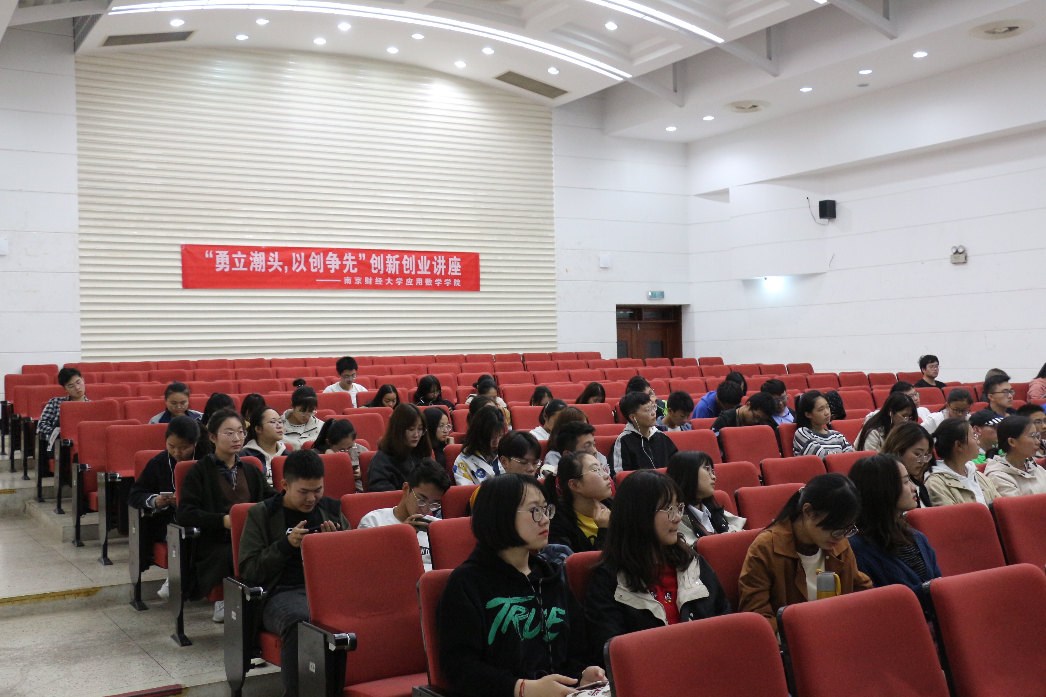 11月6日下午,应云顶国际yd222线路检测中心邀请,高顿教育高级讲师周昂学女士在仙林校区德经楼二楼报告厅为院大一新生作了题为“勇立潮头,以创争先”的创新创业主题讲座。