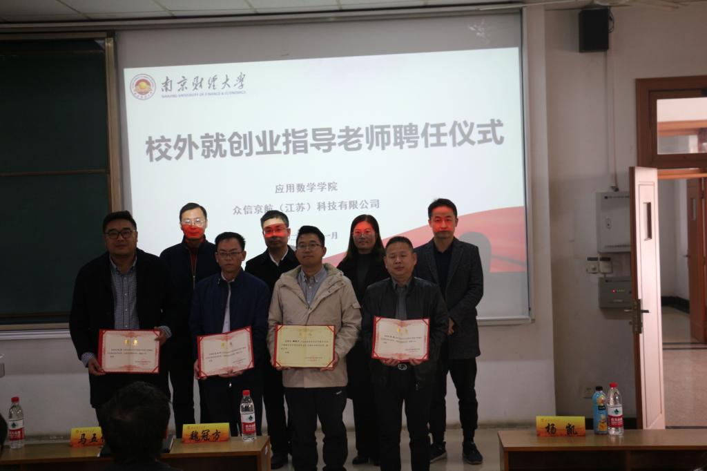 首先,孙晓飞副书记介绍了众信京航(江苏)科技有限公司的业务范围及各合伙人对就业市场的探究和认知,提议新生应经常走进企业进行参观学习。随后,公司党政领导为纪奥主任、马五代总经理、魏冠方副总经理和杨凯副总经理颁发校外就创业指导老师聘书。