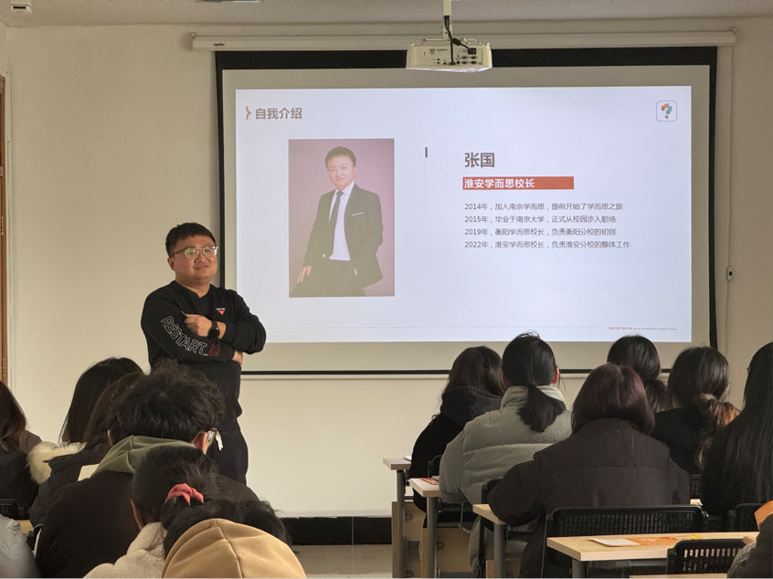 为帮助同学们了解教培行业就业形势,掌握企业需求,更好地抓住春招黄金期,3月6日下午,公司在仙林校区老员工活动中心113教室举办教培行业招聘宣讲会,邀请学而思张国老师和陈醉老师主讲,公司大三、大四部分员工参加。