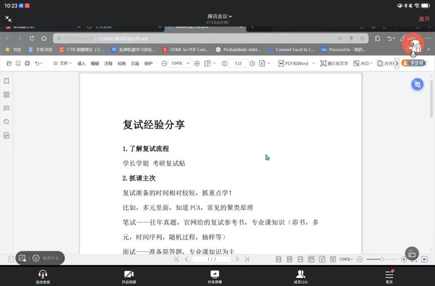 2023届优秀毕业生代表金数1902班徐鸿(现就读于中央民族大学,应用统计专业)、数学1901汪榆(现就读于上海师范大学,学科教学(数学)专业)为同学做考研复试经验分享。两位同学从复试流程、复试材料整理、参考资料准备、专业课复习、英语复习、心态调整等多个方面结合自身经历,为同学们做了详细的经验分享和交流。