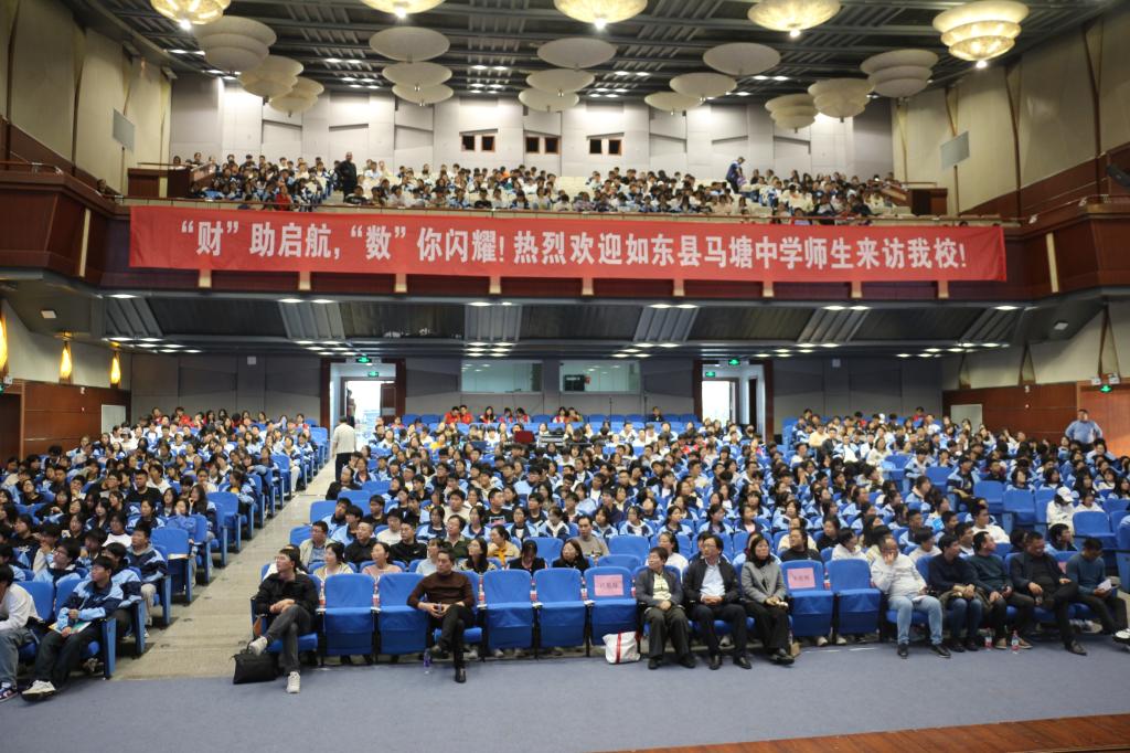随后,师生们齐聚仙林校区老员工礼堂。公司经理方国昌致欢迎辞,他向到访的师生致以热烈的欢迎,他说南财与马塘中学已经形成了多年的良好合作。近年来,许许多多马塘学子们秉持着“志在千里的开拓意识、从善贵和的人文情怀、脚踏实地的拼搏精神”的马中精神继续成长为优秀的南财人,感谢马塘中学持续为公司输送优质生源。希望同学们能在此次活动中近距离地感受南财文化,喜爱南财环境,继而也能成为南财的小小宣传员、推广员。同时,他勉励高二学子砥砺前行,在高考中取得理想成绩,能够在丰收的金秋九月再次相聚南财。员工处副处长全真真从历史沿革、团队力量、特色专业等角度,详细介绍了公司教学环境、团队建设及发展成就。公司副经理孙成峰向大家介绍了公司概况,专业特色、培养方案、课程体系和就业方向,让师生们对公司的学术氛围和专业特色有了更加全面的认识。心理健康教育中心高剑婷老师作了一场主题为“让爱回家--家人相处,沟通有道”的心理讲座,和在座师生回顾生活中的无效沟通,借助冥想练习,分享萨提亚沟通模式和冰山理论,和大家探讨有效沟通方法,期待同学们都能和家人和谐交流,以更好的心态全力以赴心中的理想大学。志愿者们为远道而来的师生们发放公司简介宣传册以及南财定制纪念品,并拍照留念。