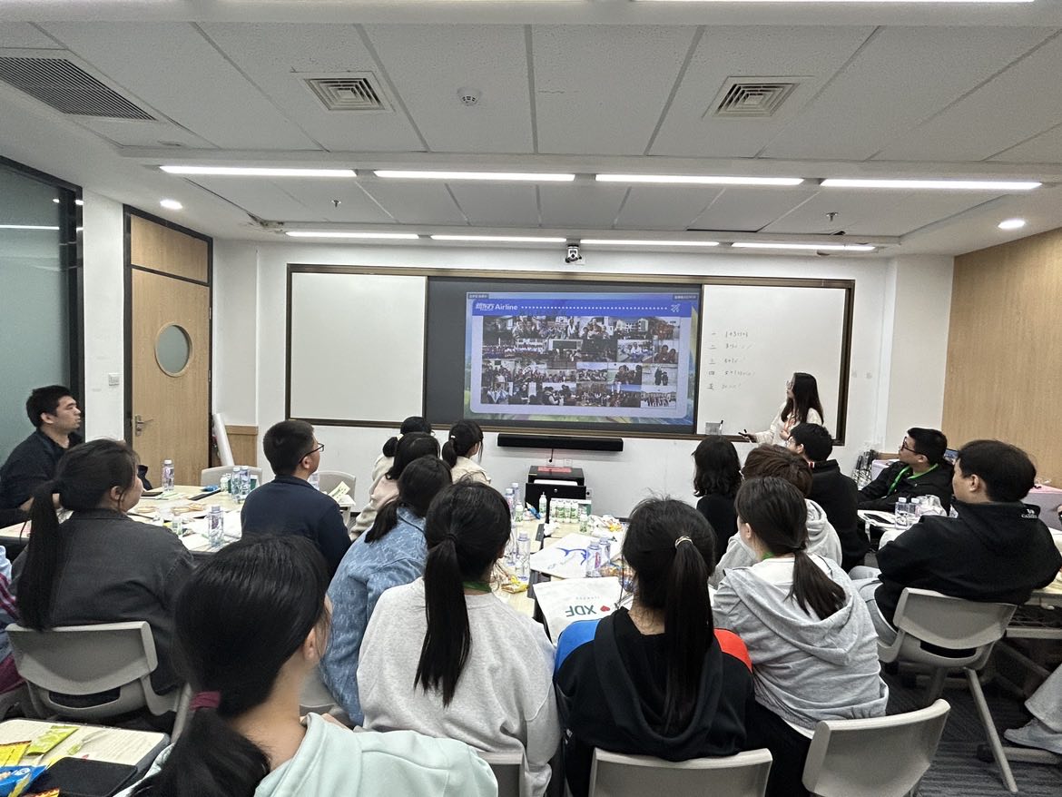 唐杰总监致欢迎辞,对南财师生的到来表示热烈欢迎,介绍了新东方行业发展概况、企业组织文化、人才培养机制及业务发展板块,详细分析了新东方江苏省域的情况,并展示了南财员工在新东方江苏省域的入职情况。