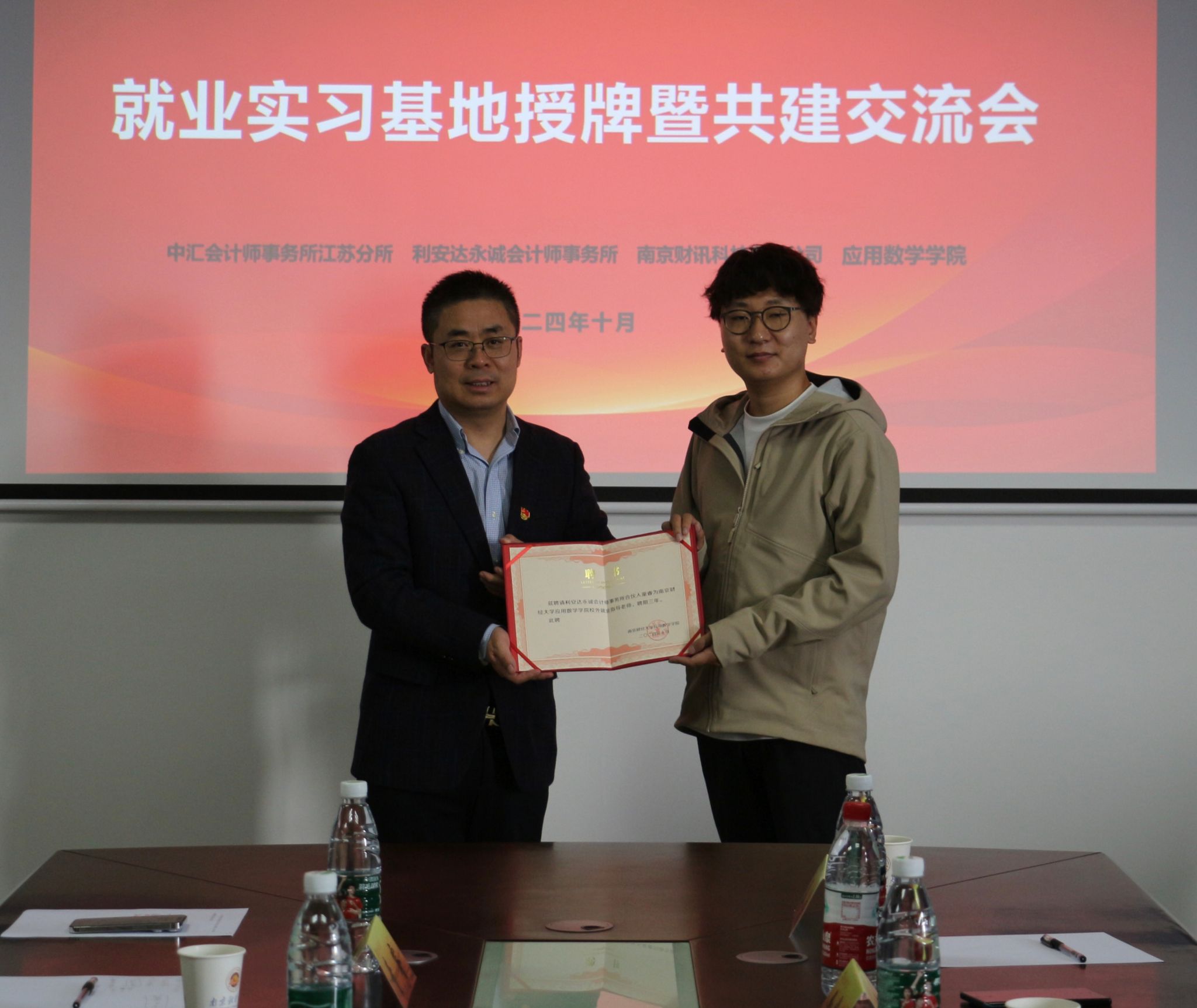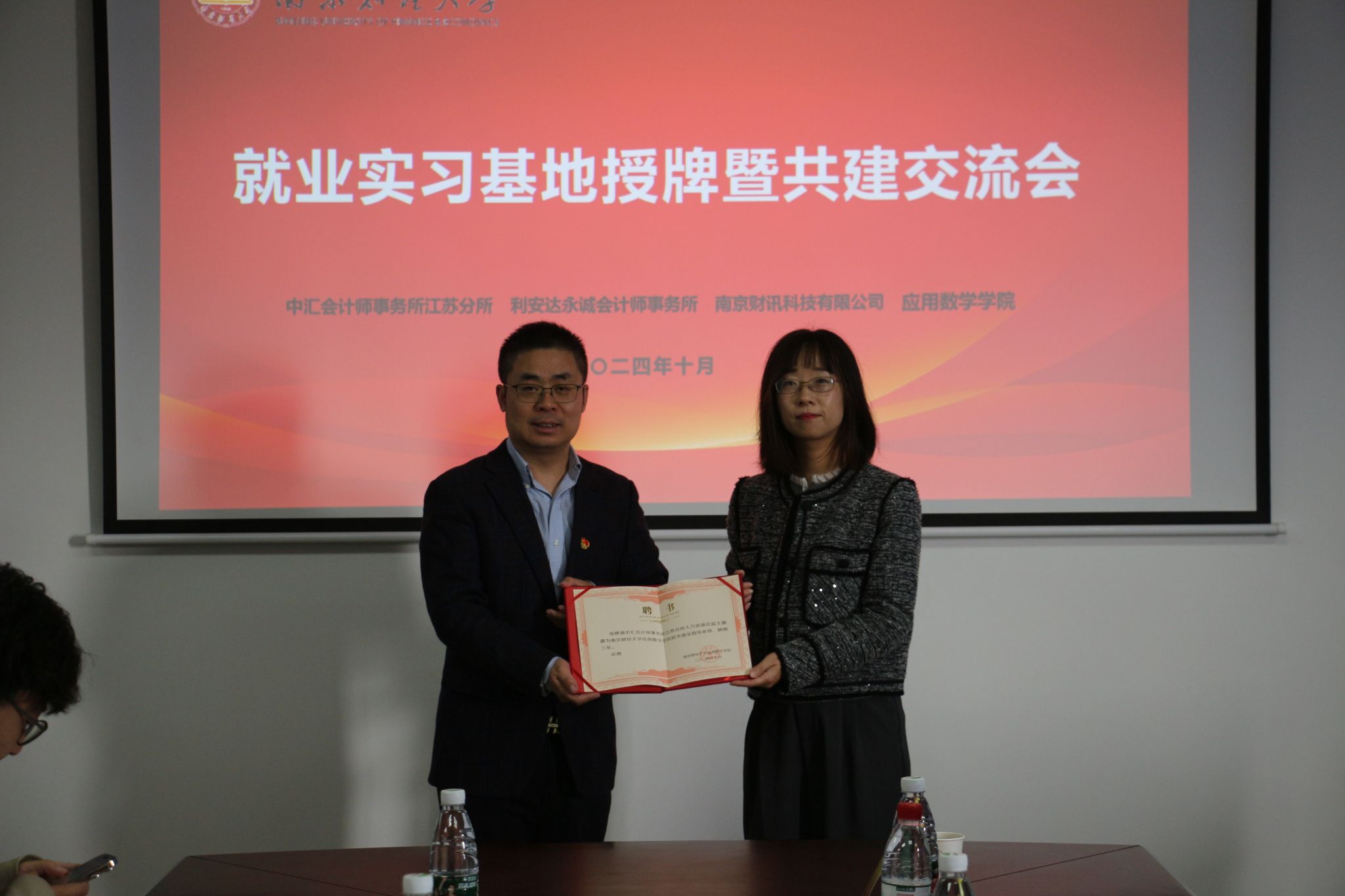 为进一步落实访企拓岗促就业工作要求,拓宽就业渠道,10月25日中午,公司在仙林校区德业楼508会议室与中汇会计师事务所、利安达永诚会计师事务所举行就业实习基地授牌暨共建交流会。中汇会计师事务所江苏分所人力资源总监王露露、利安达永诚会计师事务所合伙人童睿、南京财讯科技有限公司总经理马五代、公司党政领导及学工队伍参加活动。