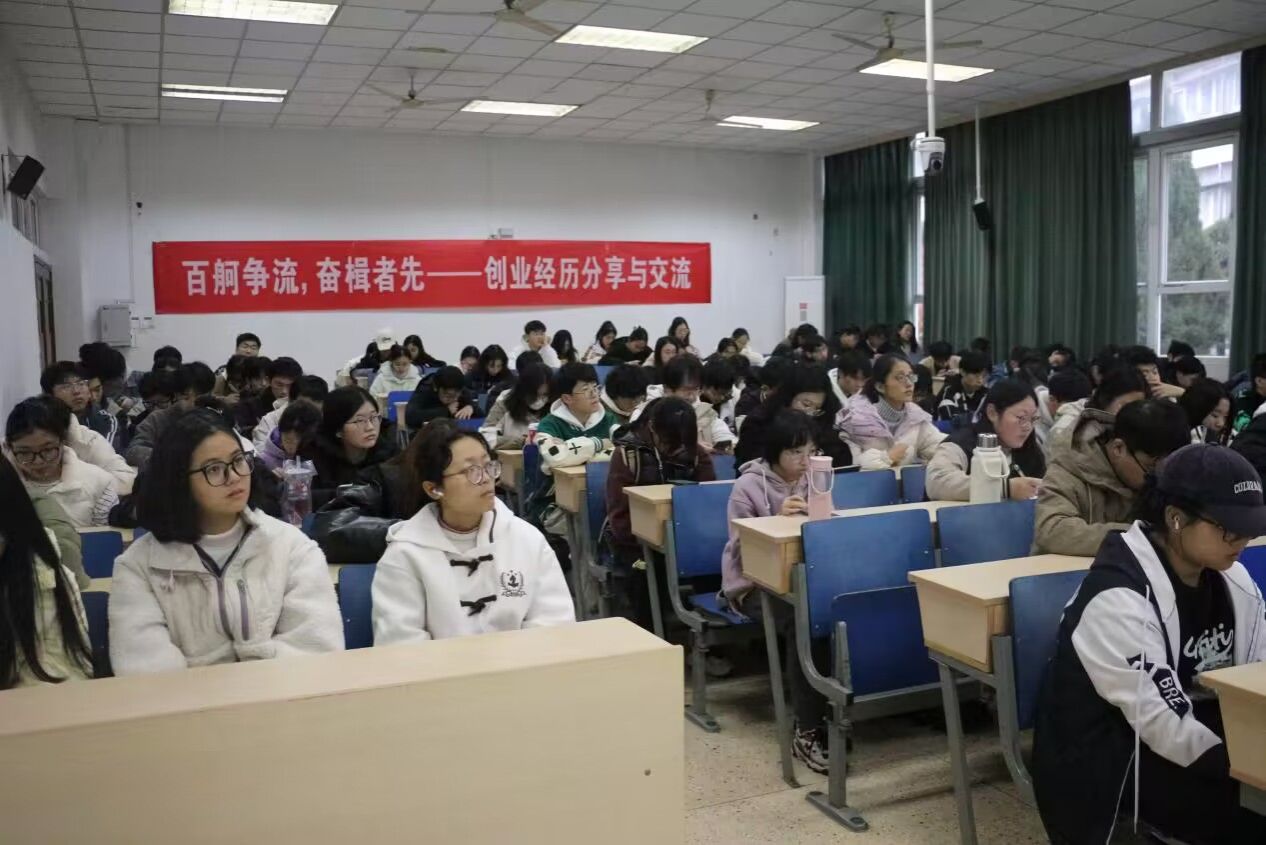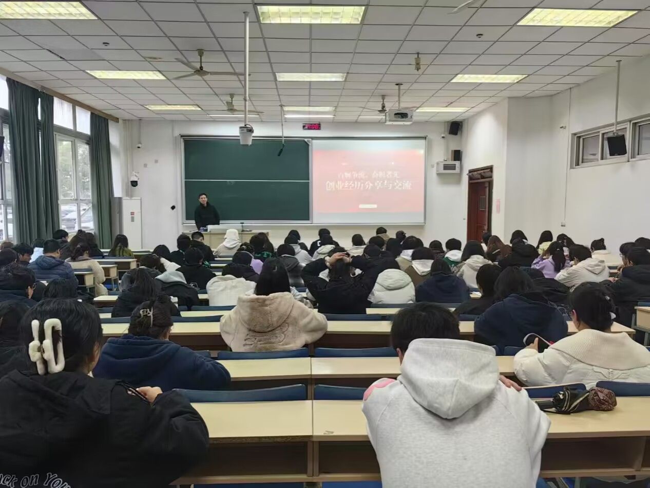 11月25日下午,公司在仙林校区德正楼101教室举办“百舸争流,奋楫者先”创业经历分享与交流讲座。本次讲座特邀公司2007届毕业生、优秀员工南京夸美人才发展有限公司董事长、总经理马江苏分享创业经历。公司2023级全体同学参加讲座。